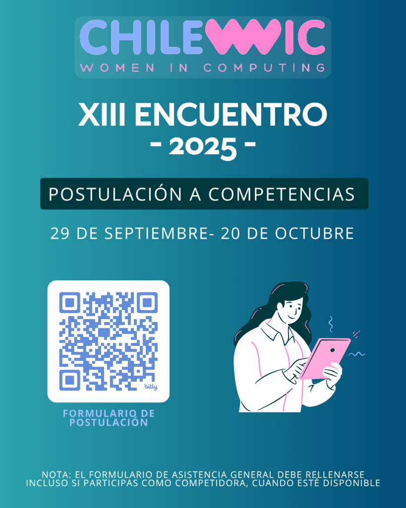 El XIII Encuentro de Mujeres en Computación (ChileWiC 2025) invita a estudiantes de carreras vinculadas a la computación, la tecnología y áreas afines a participar en la Competencia de Estudiantes, instancia que busca visibilizar el trabajo de mujeres en estas disciplinas y fomentar redes que fortalezcan su desarrollo profesional.